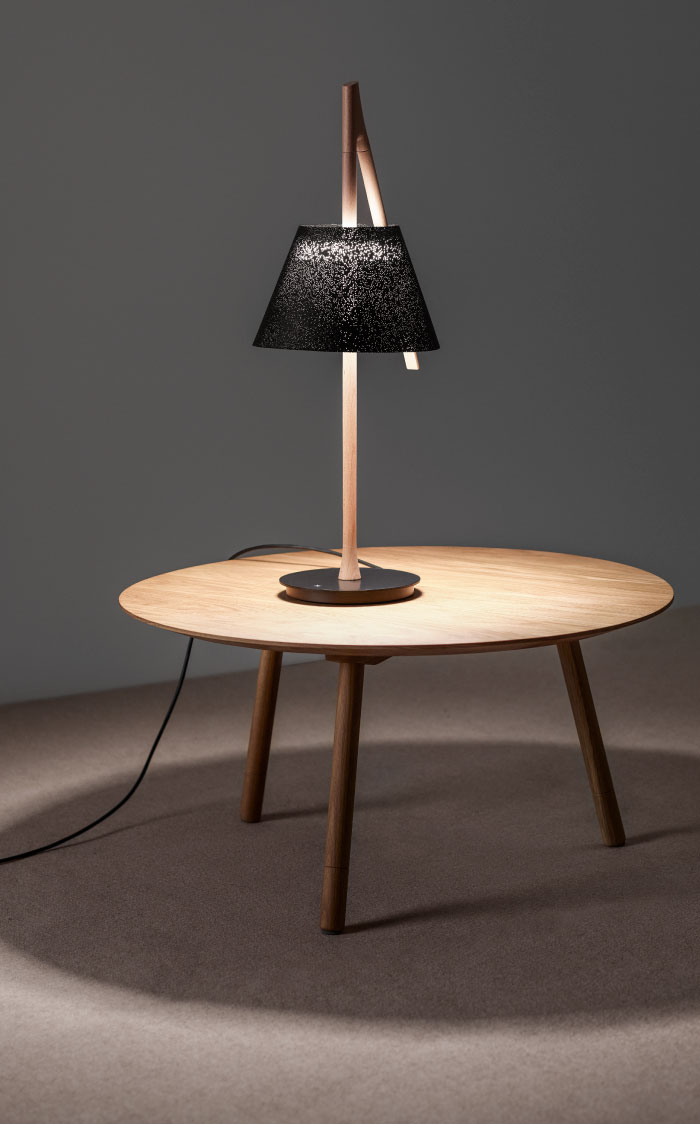 Cambo is the new design lamp resulting from the collaboration with the cenlitrosmetrocadrado studio. The word Cambo (of Galician origin) refers to a wooden piece with a hook at one end, a handcrafted element present in the Galician tradition. With nature and our environment as inspiration, cenlitrosmetrocadrado has designed the Cambo system based on the natural growth of plants, the branching and bifurcation of trees. Ricardo Tubío and Xabier Rilo’s vision of the natural environment has given rise to a modular system that allows different designs to be configured with the same elements. Cambo is made of a beech wood structure with a water-based varnish that allows the material to be shown in its most natural form. With this peculiar structure, the painted stainless steel mesh is introduced into the lampshade which houses the integrated LED light source.